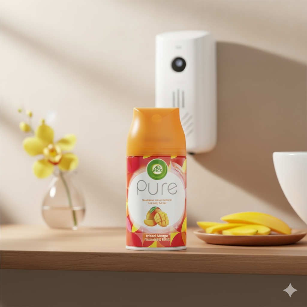 Formulated without added water, Air Wick Pure Island Mango produces a cleaner, drier mist that eliminates unwanted odours while infusing the air with a sweet, fruity scent. With up to 70 days of continuous freshness (on low setting), it keeps your home smelling tropical and inviting day after day. Bring the sunshine indoors with Air Wick’s Pure Island Mango fragrance and experience effortless freshness around the clock.