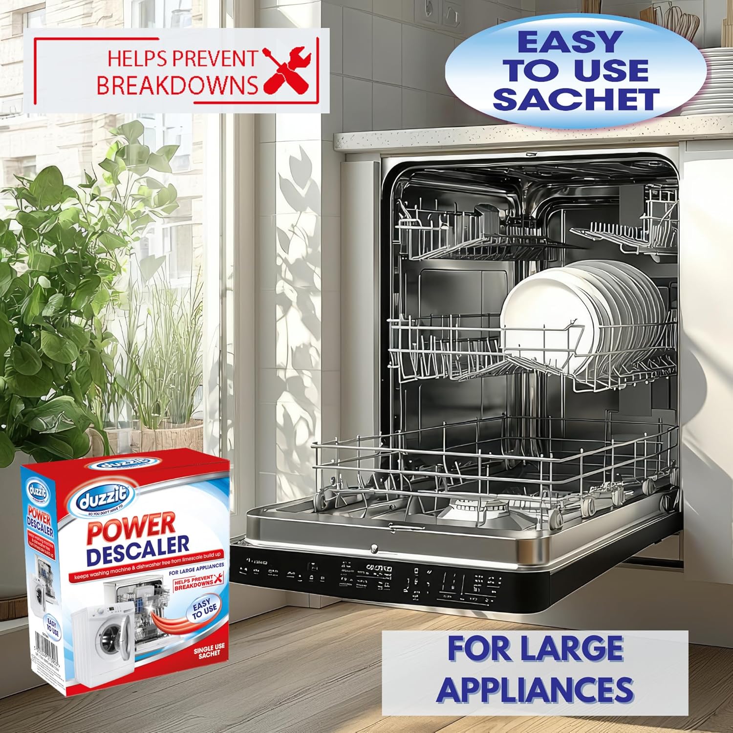 Keep your washing machines and dishwashers performing like new with the Duzzit Power Descaler. Specially formulated for large appliances, this powerful descaler effectively removes limescale, mineral deposits, and buildup that accumulate over time, ensuring your machines run efficiently and last longer. Regular use helps maintain optimal performance, reduces energy consumption, and prevents unpleasant odors caused by residue and buildup.